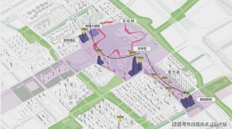 · 未来塔:位于CAZ的正中央,建成约300m,将成为嘉定甚至是上海西北第一高楼,是真正的C位地标(规划中)
