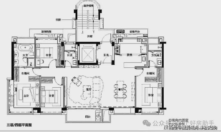 动静分区,访客、起居、家务动线设计流畅,充分考虑空间的均好性。三开间朝南的飞机户型,采光面阔绰,南北通透,视野及空间感更加开阔。