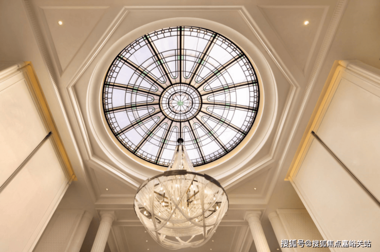其中,星空顶泳池用纯天然优质石材打磨的罗马柱点缀。这不仅仅是一个活动空间,更是一个艺术的门庭,让业主足不出户尽享法式惬意优雅。