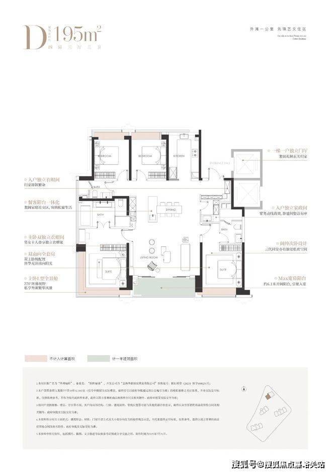 而在总价层面,外滩瑞府也是当下千载难逢的2200-2850万一步到位4房的机会。2024年至今,内环的四房供应起步面积段大约在180㎡,180㎡以上的四房供应占比55%,总价高昂,普遍在3500-4000万左右。