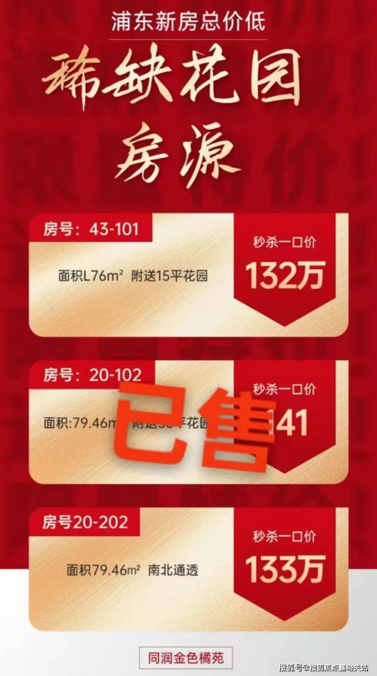 最新消息,总价132万起!买浦东正两房,同润金色橘苑 约79-88m²2-3房!附官方预约通道!