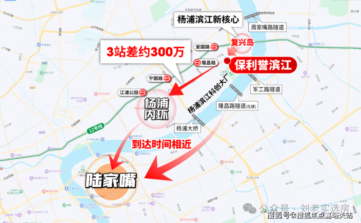 意味未来在复兴岛工作的大量人群,无法在岛内实现居住需求,必须向外寻求高品质住宅——而保利誉滨江,正是杨浦滨江所有新盘中距离复兴岛最近的项目(直线复兴岛约300米),自然成为复兴岛居住需求外溢的“第一站”。