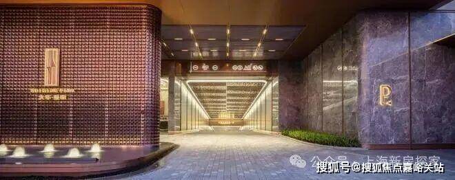 地上大堂,单元门厅的雨棚采用香槟金的 弧面铝板、立面 干挂爱马仕灰蜂窝岩板,岩板上嵌入专属楼栋号,单元门两侧的弧线段金属采用定制模具加工。大华星曜售楼处电话☎:400-856-9058☑️☑️