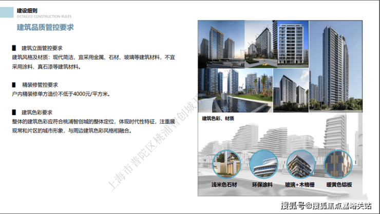 在2022年第二批土拍名单亮相之前,桃浦智创城规划展示馆路演中心,就举办了一场土地推介会,当时就公布了地块对于住宅建筑立面管控标准和展现精品化住宅定位的要求。