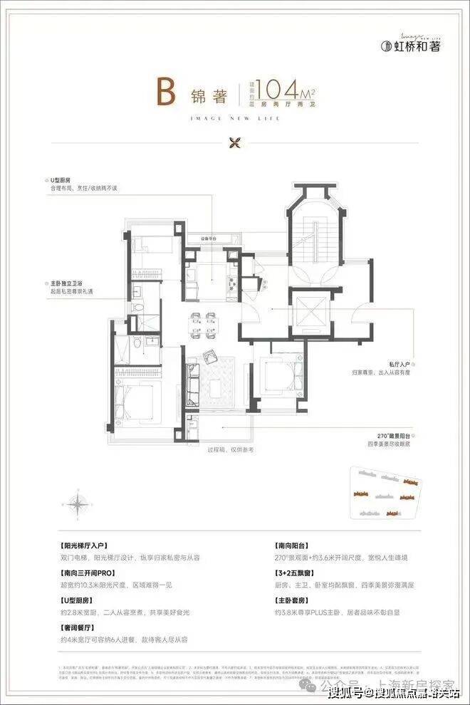保利虹桥和著售楼处电话4008569058☑️☑️建面约104㎡3房,在建面94㎡小3房优点上,又进一步升级了尺度感,约10 .3m的南向面宽,为室内带来了出众的采光面和尺度感,这个户型无论从实用性、尺度感,亦或是视野、采光、私密性来说,都做得相当优秀。保利虹桥和著售楼处电话4008569058☑️☑️