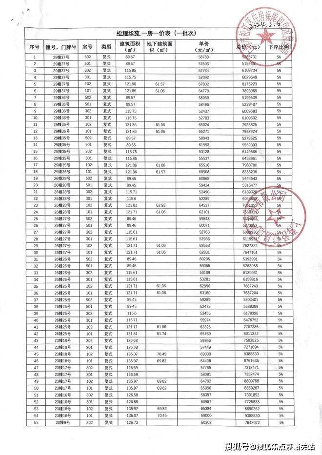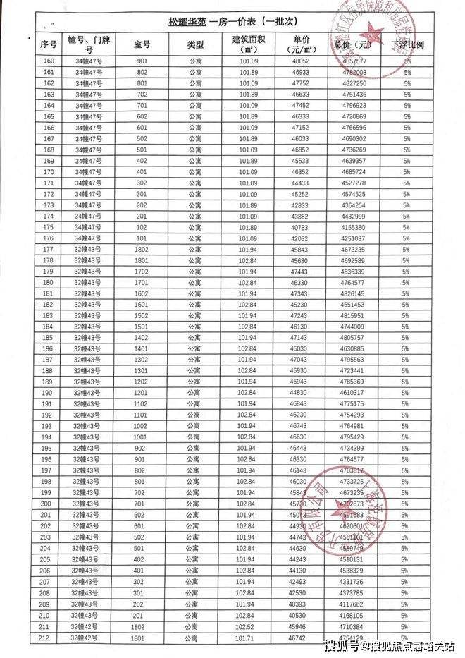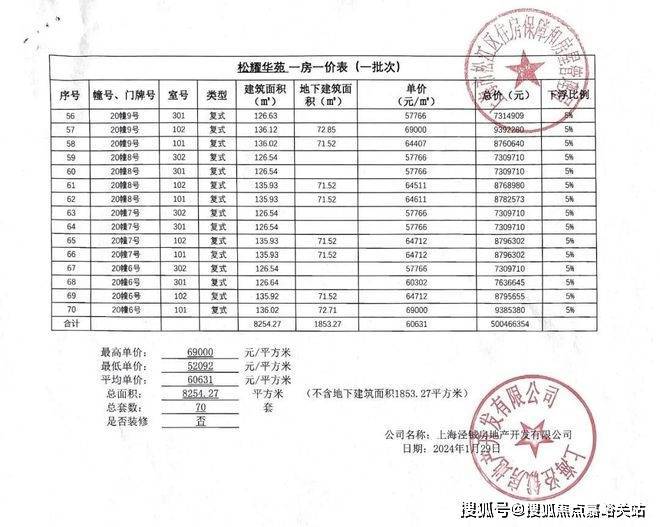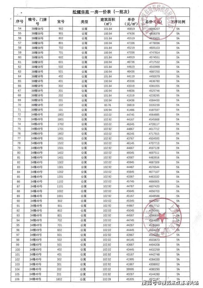 「一房一价表」