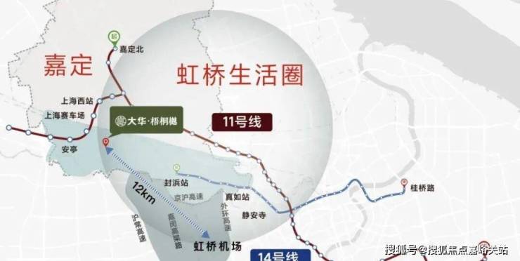 「大华梧桐樾|越界」,位于嘉定的核芯区位,与虹桥主城区核心距离也只有5km!
