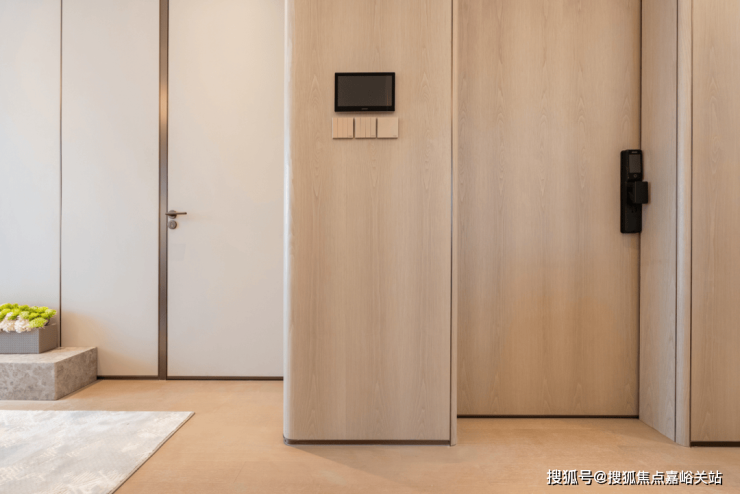 这一点实在难能可贵,毕竟在大多数样板间里,电梯厅和室内空间往往由于采购商与施工方的不同,导致风格、色系等方面存在割裂感。