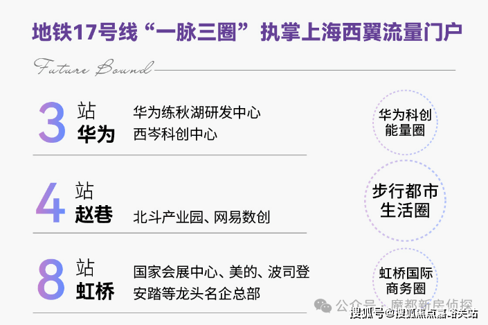 要看清联发·时光新澍的价值,首先要读懂它脚下这片热土的产业格局与城市雄心。 从联发·时光新澍出发, 3站华为、4站市西软件园、8站虹桥商务区 , 直接锁定三大高能级产业价值,未来发展空间可想而知!