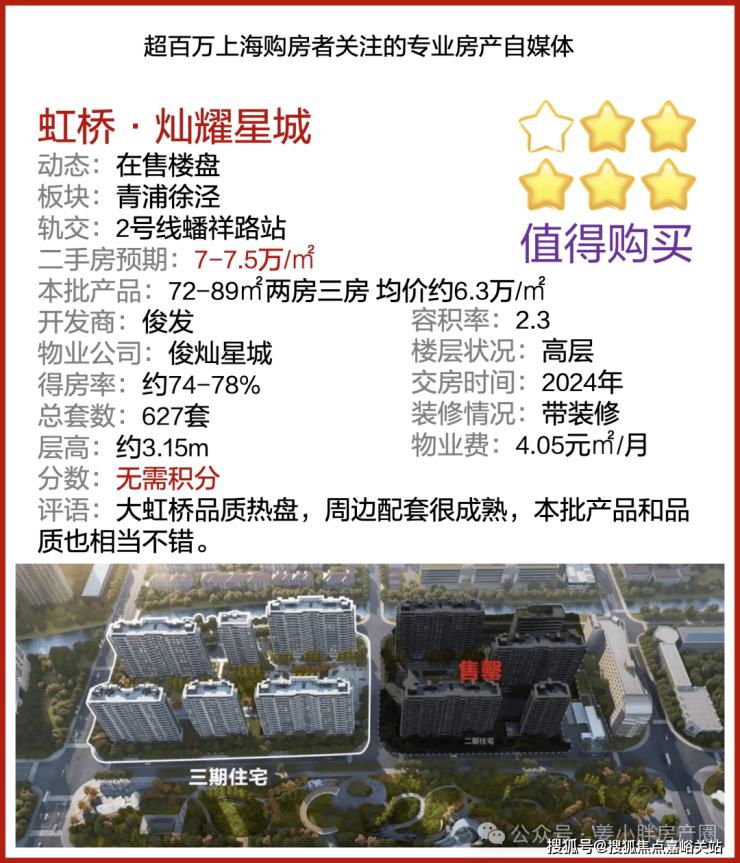 大虹桥徐泾「虹桥灿耀星城」大虹桥唯一在售小户型,建面约72-89㎡两房三房,超低能耗住宅,入住大虹桥徐泾城市综合体准现房