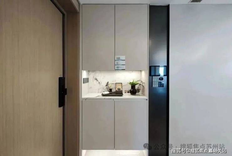 在细节上同样不遗余力。比如入户后的玄关柜是交付标准,打开厨房柜体、镜柜等各类收纳空间时均有惊喜;再如客厅和主卧均采用弧形吊顶,还有风暖浴霸、玄关顶面感应灯等细节,都透露出项目对品质生活的追求。