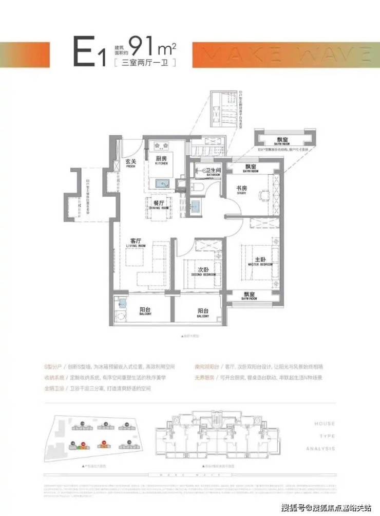 “南向双阳台+南北双飘窗”,构筑真3房户型!