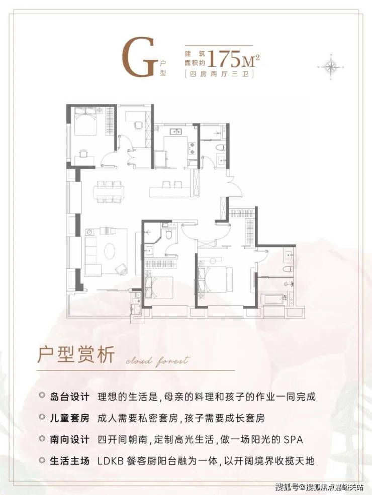 建面约175㎡4房3卫,几乎是上海改善的终点户型。