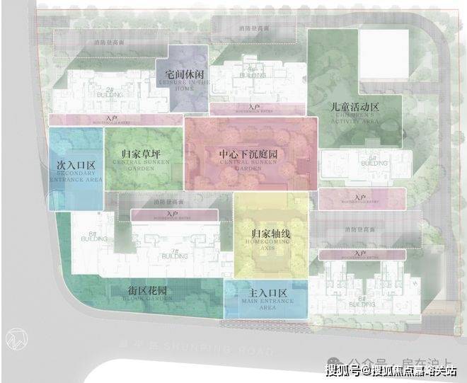 全部楼栋底层局部架空,打造多个景观架构,最大楼间距达到43米,并在小区中央位置配置下沉庭院;
