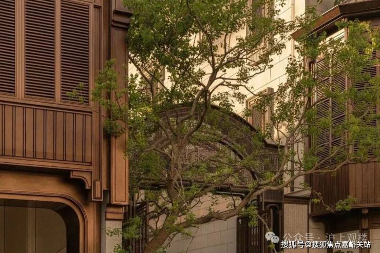 士林润园对在地建筑的风貌元素进行了深入研究和创新演绎,提炼出35组石库门头、4个过街楼及巷门、44个外立面及门窗套等构件、10个内天井样式及其他特色构件,在当代建筑中予以活化呈现。