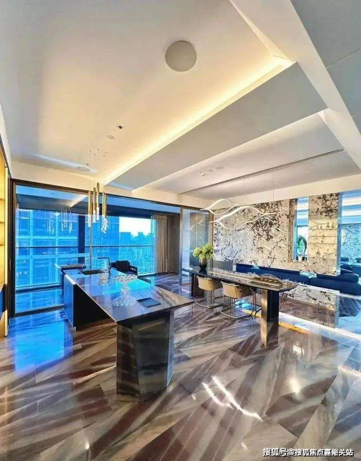 比如采用奢石静雅棕石、雪山银狐石、月光白石、挪威木纹石等石材;