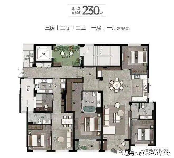 230㎡子母户型3房2厅2卫/1房1厅1卫▼