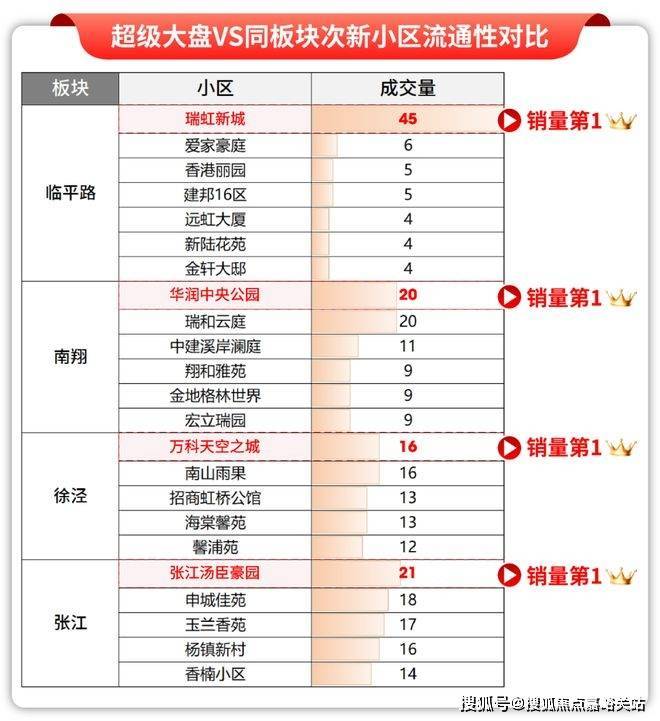 从过往表现来看,但凡能定鼎区域大盘的项目,比如瑞虹新城、汤臣豪园、华润中央公园、万科天空之城, 首先销量即流通性区域第一!