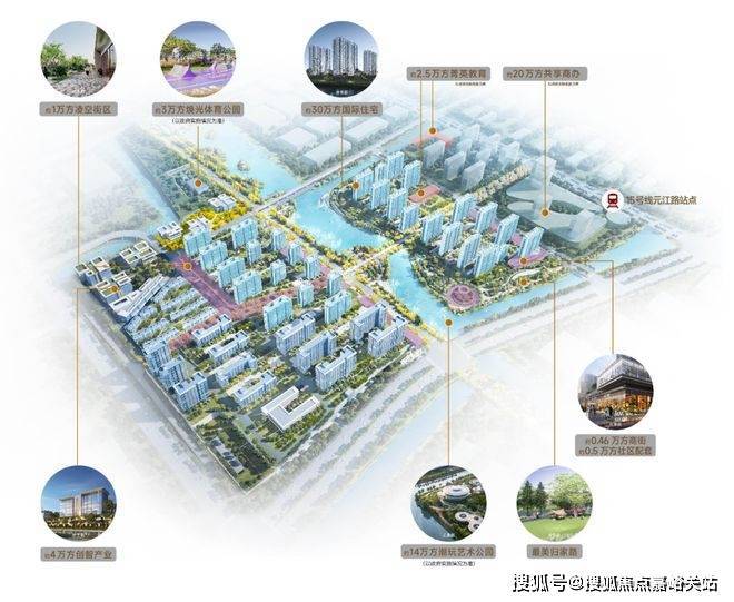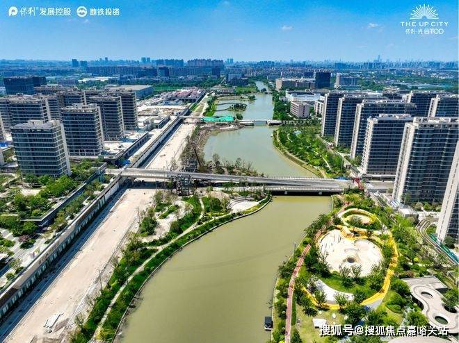 除了便捷与繁华,项目将公园及天然水系引入社区, 约3万方运动竞技公园+约14万方滨水艺术潮流公园+城市绿地,以约20万方滨水双公园,构成一幅自然生态下的超级TOD底盘。