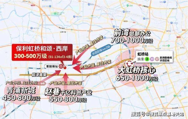 从周边区域房价来看,东面2站之隔的前湾,房价已达700-1000万级;徐泾650-1000万级,赵巷550-800万级,即便下游的青浦新城,房价也处于450-800万级