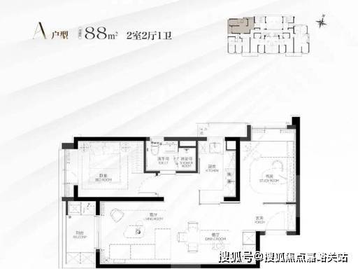 建面约 88㎡两房两厅一卫(入门优选)