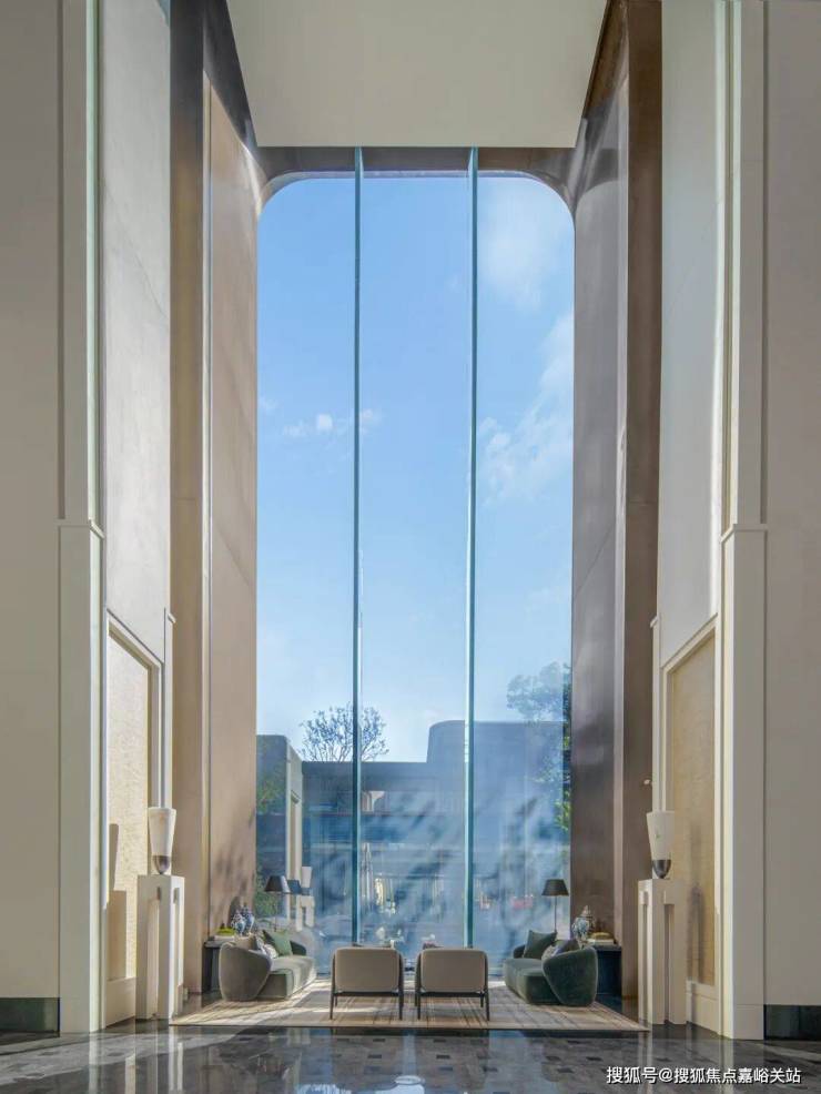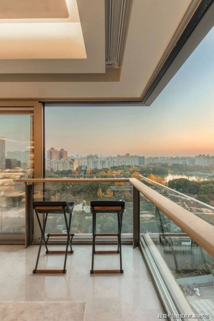 约 3.5 米层高结合连续无柱转角视野,形成 270° 采光界面,将公园景观最大化引入室内,使居住空间回归以生活体验为核心。