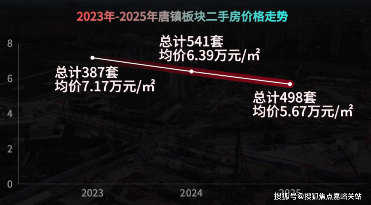 与上海大盘走势一致,唐镇二手均价从2023年的 7.17万/平, 跌到2025年 5.67万/平, 仅2025年一年就跌去了 11.6%。