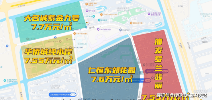 其次是 四兄弟片区, 包括 大名城紫金九号、华侨城纯水岸、仁恒东郊花园、浦发罗兰翡丽, 小房弟几年前来这边感觉就是农村,如今整体居住氛围已经很浓,虽然远离地铁,但2021年最高成交价突破10万,现在回落到7-8万,比如 浦发罗兰 2024年以来很多成交单价7万多,相比新房性价比其实不错。