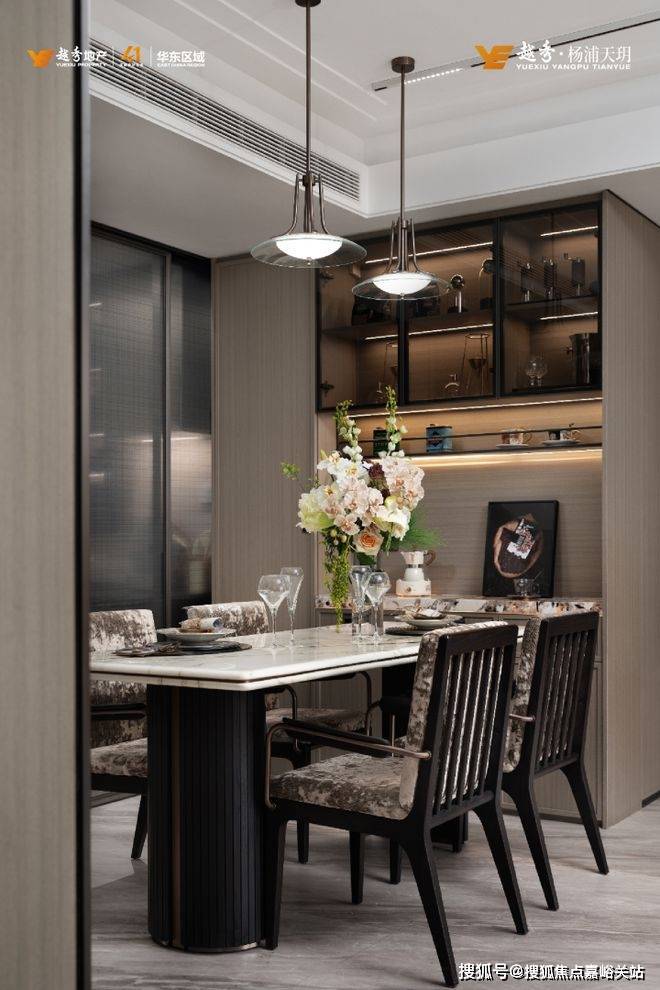 餐客厨一体化设计,进一步放大了空间感,层高约3m,客厅的建筑面宽约3.4m,整个餐客厅建筑面积约22㎡,包括中央空调、地暖和新风三大件都贴心配齐,餐厅区域的餐边柜也是交付标准。