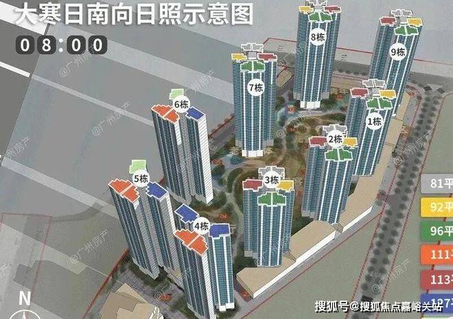 房产君选取广州所在气候区的日照标准日——大寒日,对项目整体的日照情况进行测算。(根据《城市居住区规划设计规范》要求)