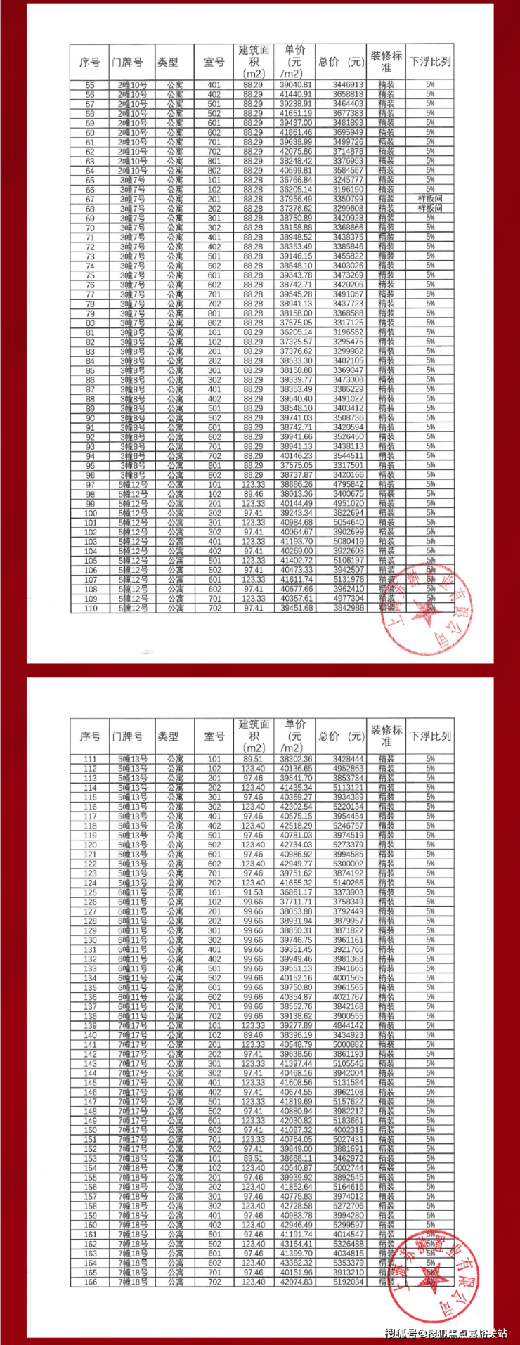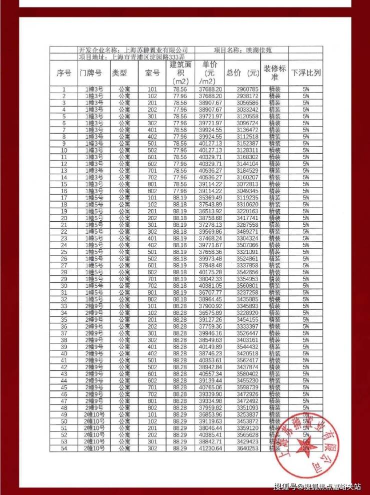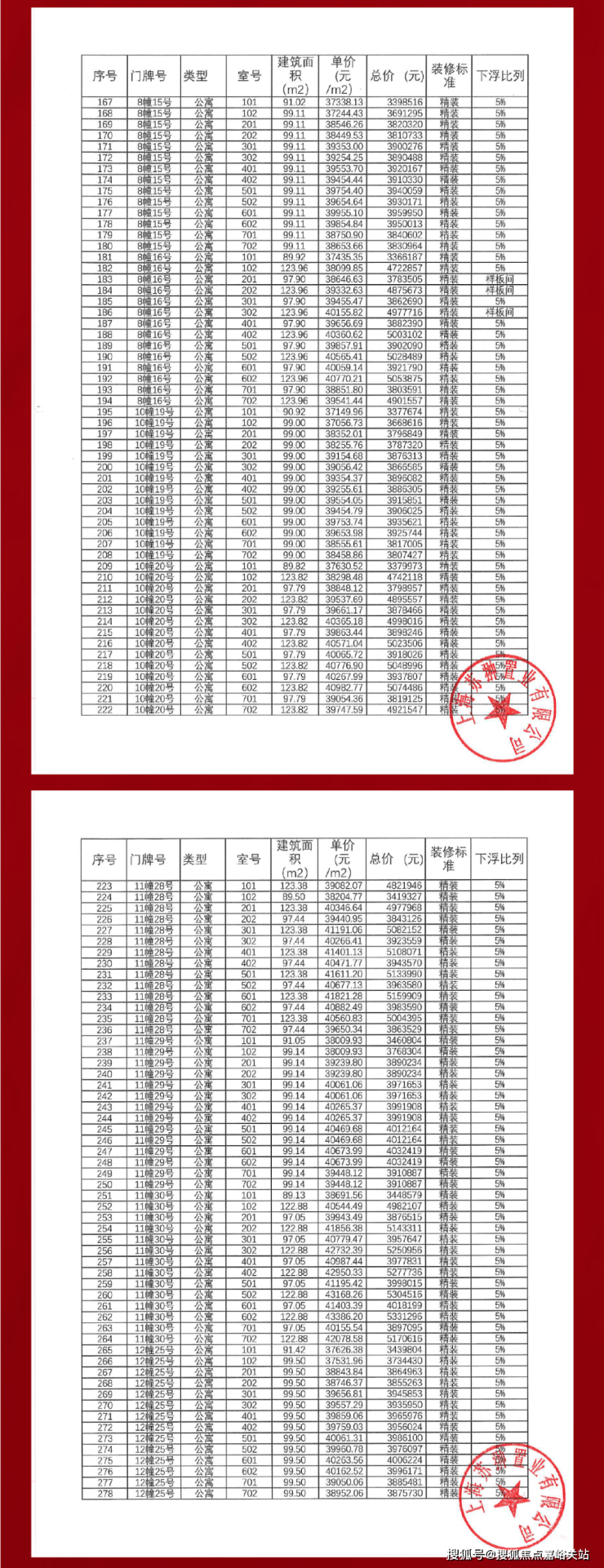 具体一房一价表如下: