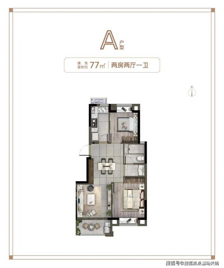 预算相对有限的,可以选这个建面约88㎡3房: