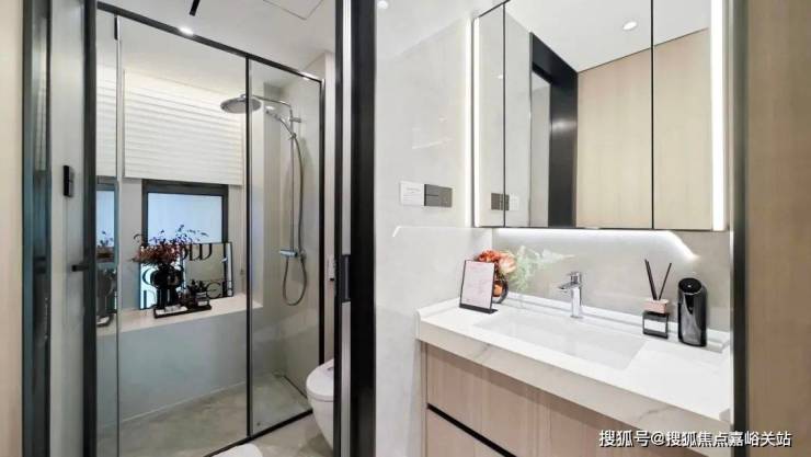 一般而言,主卫和次卫能拥有窗户达到全明采光已经称得上优秀了, 而这套户型的两个卫生间均都有飘窗,丰富更多收纳可能性。