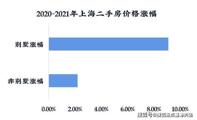 例如2021年上海楼市复苏阶段,非别墅二手房成交价回升约2.20%,而别墅产品涨幅高达约9.10%,领先约6.9个百分点!