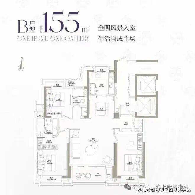 建面约155m²户型,主力总价2700万左右