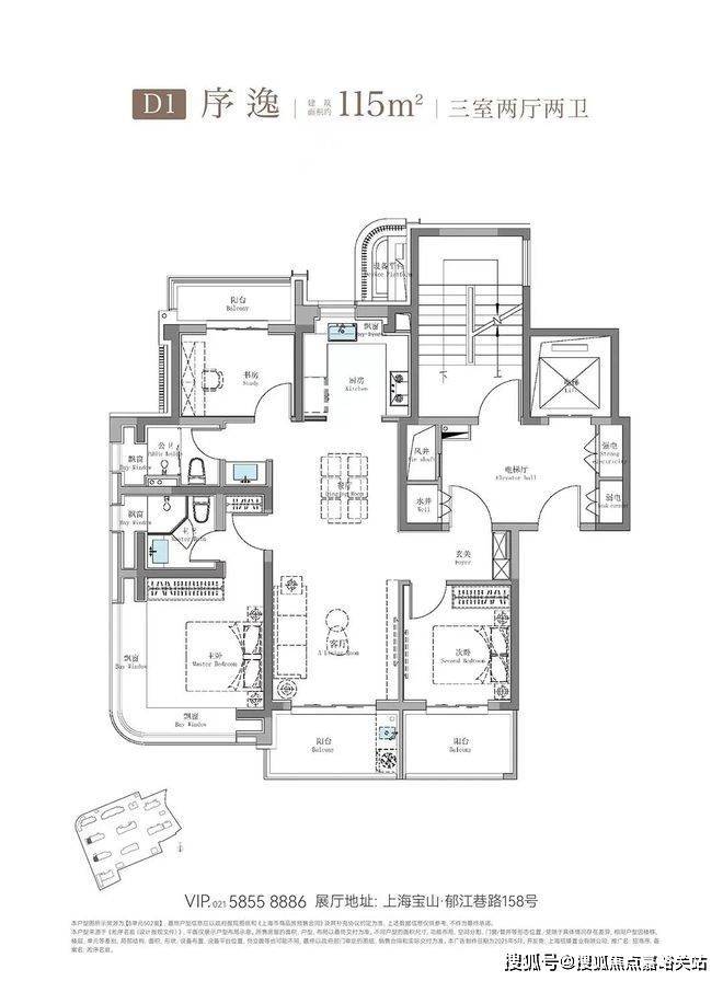 其中建面约115㎡鲲鹏阁三房户型是上海此前未见的全新王炸级产品