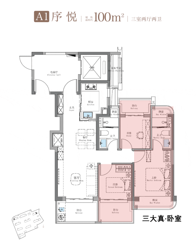 百平三房的升级款,户型设计足以媲美市面上建面约130㎡的户型。
