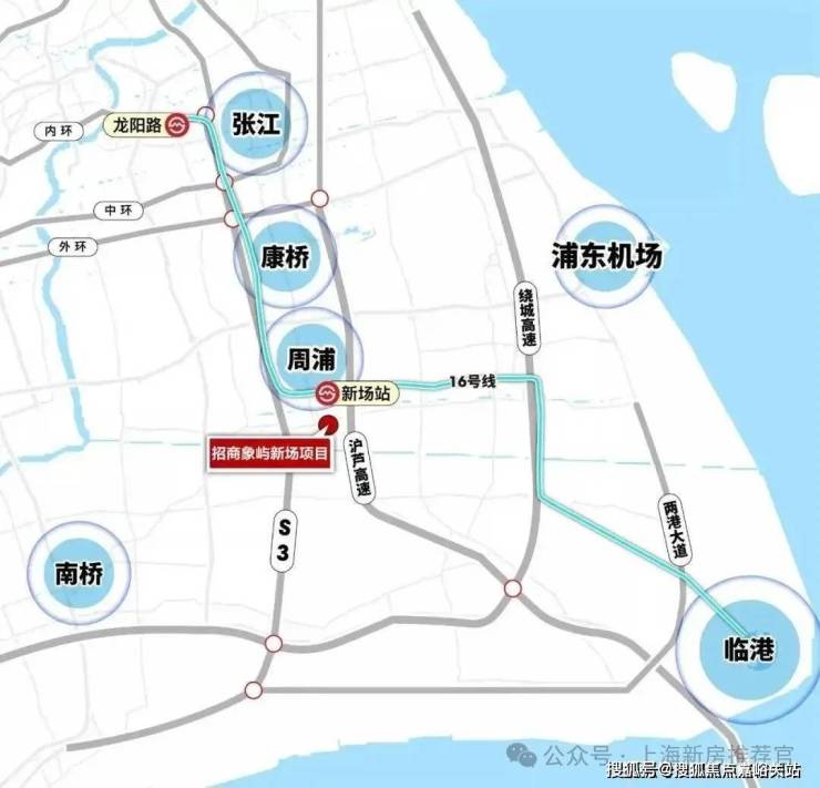 在交通上,项目距离16号线新场站步行约2.3公里,显然依赖地铁出行的话,可能不太现实;但项目临近沪芦高速出入口、申江南路等主干道,自驾的话,可快速直达张江、唐镇、周康等板块!