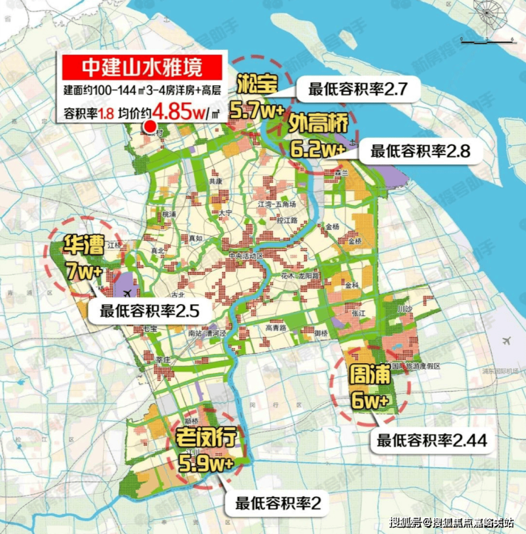 不仅如此,「中建山水雅境」所在的宝山顾村,作为上海主城区范围内距离市区近、配套也相对成熟的板块,均价约4.85w/㎡的价格优势+仅约1.8的超低容积率,在主城区范围内也是降维打击!几乎没有对手!