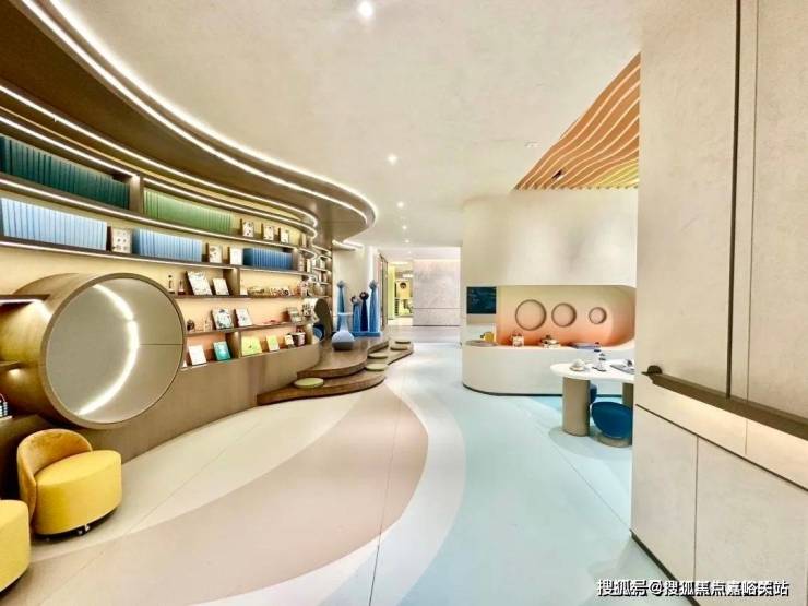 社区内部还有开放式架空层设计,结合建筑、空间、自然环境关系,室内室外联动,呈现一个景观会客、海浪书屋、儿童休闲等多重功能的开放式架空层,目前实景基本还原效果图,未来业主及孩子也有一个玩乐及阅读的开放式公共空间,更具生活趣味~