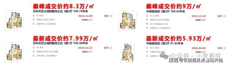 然而同区域地段更好的中核锦悦府, 巅峰成交价超过9万/㎡,如今最新数据中有一套中楼层房源5.9万/㎡成交 ,对比初始约6万/㎡新房均价,甚至已经 “破发”!
