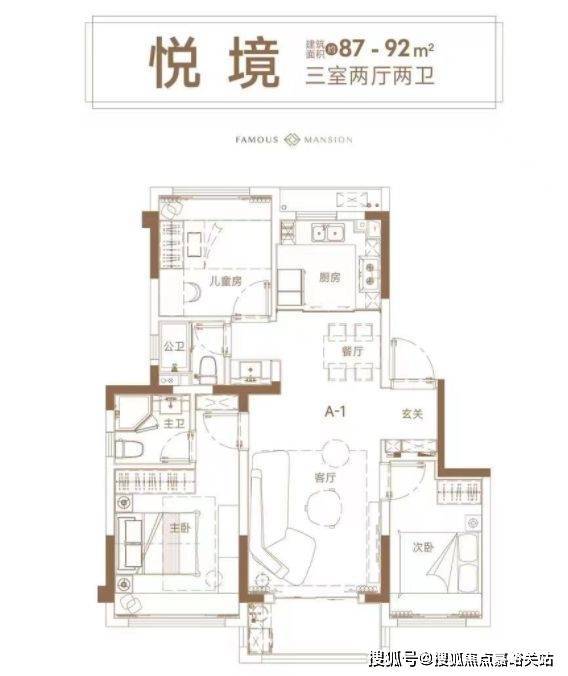 先来看看 建面约87-92㎡三房,做到了双卫布局,能完美实现市面上“百平3房”的布局,紧凑户型+超强功能性,让买房人的钱都用在刀刃上!