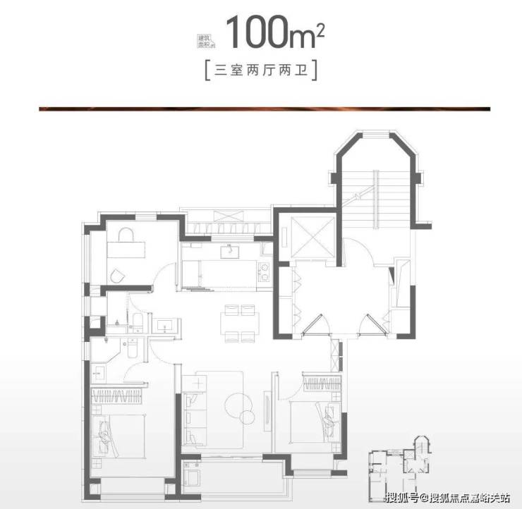 建面约100㎡户型设计得恰到好处!整个户型 格局方正,也是当下颇受欢迎的飞机户型。