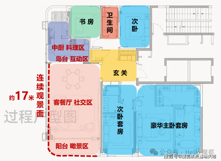 阳台与客餐厅落地窗形成的总长约17米的连续观景面是对滨江住宅的最大尊重,绝不放弃对顶级江景的私家收藏!