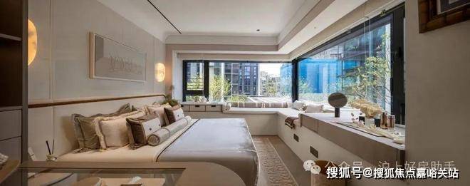 主卧拥有270度环幕飘窗,视野和采光优越,配备了高奢卫生间,空间感、尊崇感拉到顶格。
