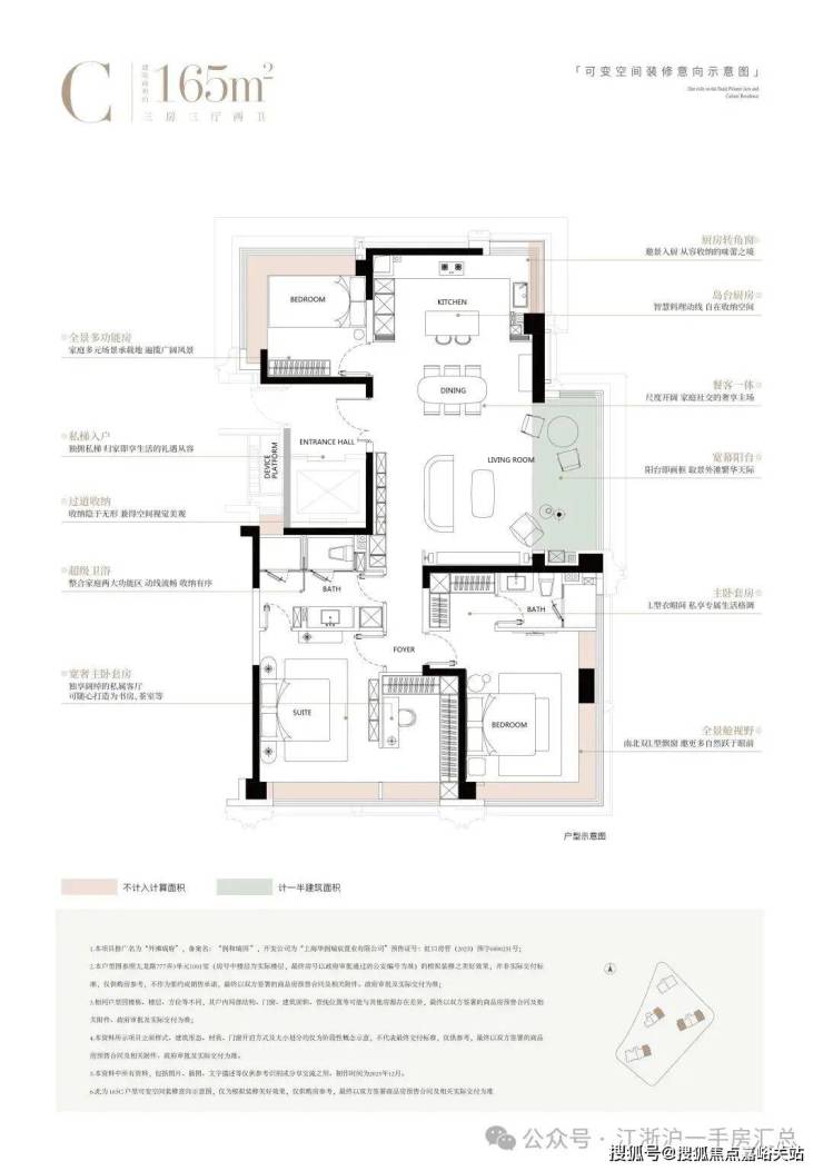 约165㎡户型 超越行业常规,提供了 空间、皮肤、功能、艺术化四大定制系统。