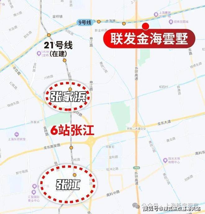 未来21号线开通后,从距离项目最近的金海路出发,4站张家浜、6站张江。