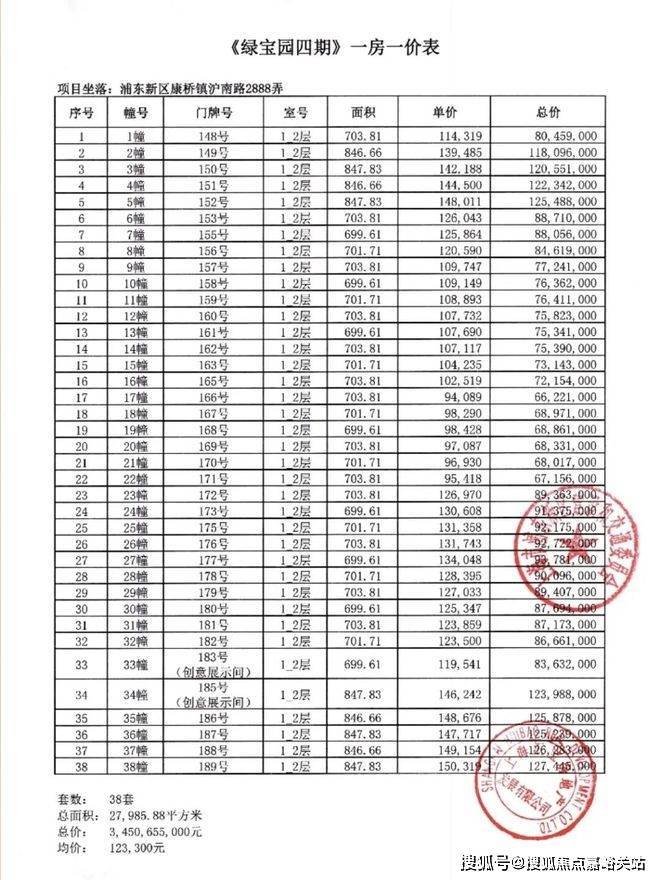 一房一价表