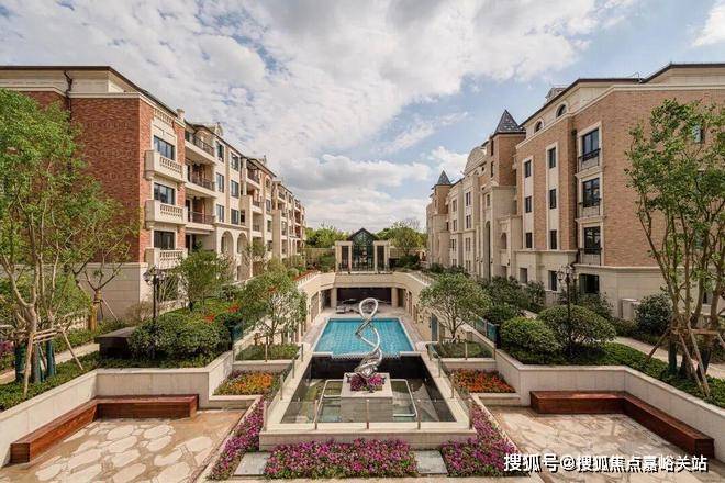 社区建筑采用欧式设计风格,外立面均为文化砖及黄金麻干挂石材打造,配备涉外别墅级草坪活动广场、下沉式露天泳池、喷泉广场,高成本打造精致又舒适的社区环境。景观则采用横纵对称设计,拥有完善的河岸景观及滨水步道。
