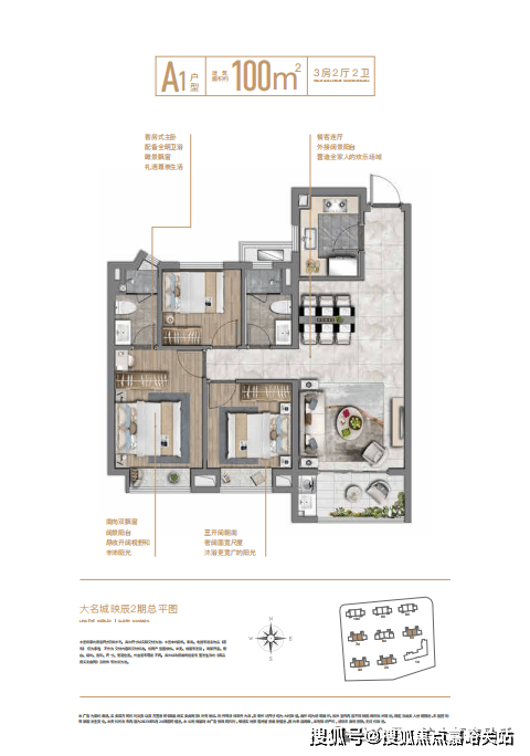 大名城·映辰的主推户型为建面约98-124㎡的三房和四房,均为精装修交付。户型设计合理,空间利用率高,三开间朝南,采光充足。
